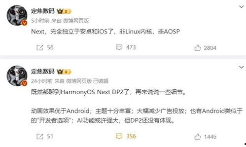 你知道吗?最近互联网上可是炸开了锅,大家都在热议一个超级神秘的话题——纯血鸿蒙的最新爆料!没错,就是那个传说中的鸿蒙系统,据说这次可是要来个大变身呢!下面就让我带你一起揭开这神秘面纱,看看这个纯血鸿蒙到底有哪些让人眼前一亮的亮点吧!