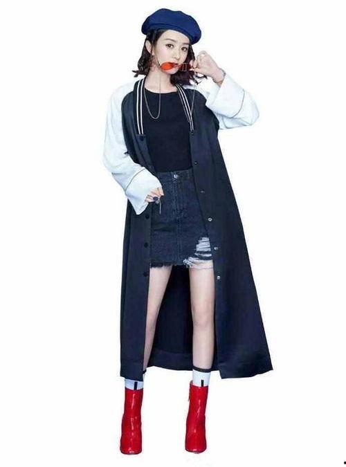 街头风:胡桃身穿一件黑色皮衣,搭配牛仔裤和马丁靴,瞬间变身酷炫女孩。这件皮衣的设计简约大方,领口处的设计更是增添了一丝性感。